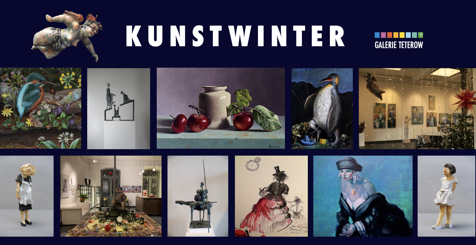 Zu sehen sind Malerei, Skulpturen, Keramik und Schmuck von verschiedensten Künstlern der Galerie. Großformatige surreale Gemälde von Malte Brekenfeld sowie floraler Schmuck von Birke Brekenfeld aus Repnitz, handgemaltes Porzellan sowie Tier- und Blumenstillleben von Jesko Donst aus Wiepckenhagen, zarte Grafik und Aquarelle von Sabine Naumann aus Wendischhagen, Stoffe von Angela Rother und aufwendig gestaltete Porzellanbilder von Ulrike Beseler aus Hinzenhagen, um nur einige zu nennen. Sie alle zeigen unterschiedlichste Motive zum Thema „Winter“.
